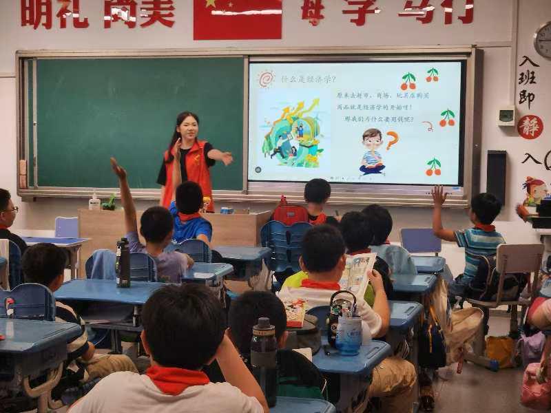 小朋友们讲授了货币形式、供求关系、市场均衡、边际效用递减等经济学小知识,将经济学理论与实际生活相结合,帮助小学生们运用课堂上学到的经济学知识分析和掌握常见的市场经济现象。