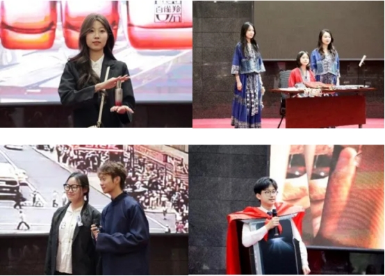 比赛现场设置新品发布会和模拟商贸谈判两个比赛环节。在新产品发布会环节,各团队运用数字化工具对产品进行多维度展示,凭借流利的英语表达、专业的营销话术和创新的呈现形式,将特色产品生动展现在评委与观众面前。在模拟商贸谈判环节,选手以采购商身份与评委展开全英文磋商,灵活运用国际贸易术语规则,结合对国际市场的深刻洞察,通过精准的产品定位与专业的谈判技巧,展现出扎实的专业功底。
