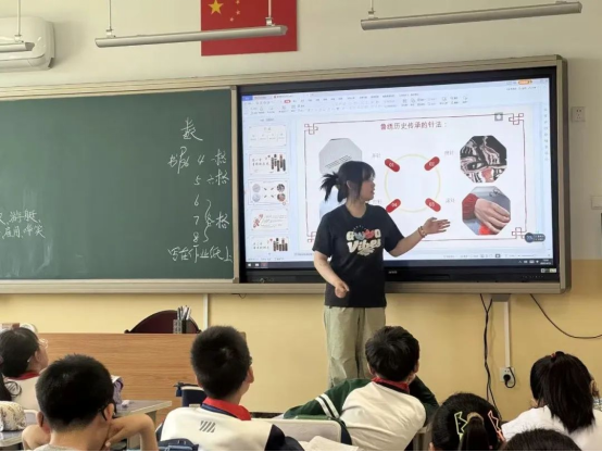 近日,在财大附小的课堂上,纺织非遗鲁绣、湘绣主题学生团队为小学生带去了新鲜有趣的非遗知识。