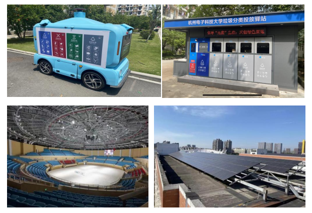 同时,杭电大教师向实践团重点介绍了学校创建“无废高校”的整体理念和实施路径。学校积极响应国家“碳达峰、碳中和”号召,充分发挥电子信息学科优势,将智能化技术深度融入校园废弃物管理全过程,构建了集分类回收、资源化利用、数字化监管于一体的循环体系。通过智能设施部署、管理机制创新和环保意识培育的有机结合,形成了具有示范价值的校园可持续发展模式,杭州电子科技大学“绿色低碳校园”应用场景也成功入选2023年度杭州十大低碳应用场景,为同类高校提供了可借鉴的实践经验。