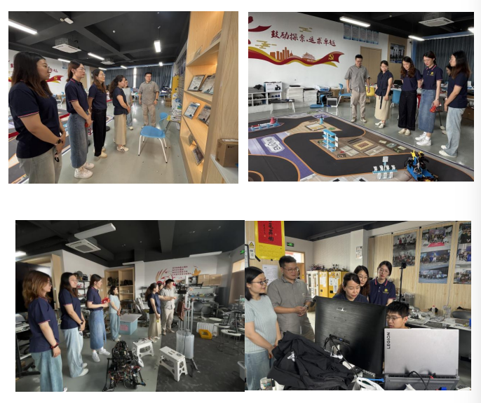 在实地参访环节,杭电大教师引导实践团深入自动化学院创新实践平台和学生活动场地进行观摩。机甲大师实验室内陈列的学生自主研发的竞技机器人系统,生动展现了学院在智能装备领域的教学成果;智能车研发基地中持续迭代的自动驾驶模型,则体现了学生在控制系统优化方面的技术积累。通过沉浸式参观,实践团成员切身领略了工程教育的实践特色,更对新财经背景下“经管+工科”复合型人才融合培养的创新路径有了深刻认识,进一步开拓了跨学科协同创新的人才培养思路。