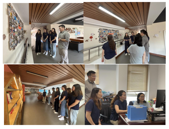 同时,杭电大教师带领实践团成员实地参观了学院第二课堂创新实践区、学生活动交流室,全方位展示了学院扎实的学工体系建设成果,其创新的思政引领机制、创新创业孵化空间、心理健康教育中心和智慧学工体系建设等特色模块,让实践团成员直观感受到学院“育人为本、精准服务”的学生工作理念。实践团成员在参观中不时驻足交流,双方围绕“数字化赋能思政教育”、“校企协同培养”展开案例互鉴,进行了充分的研讨,启迪方向思路,共探新时代思政育人实践创新。