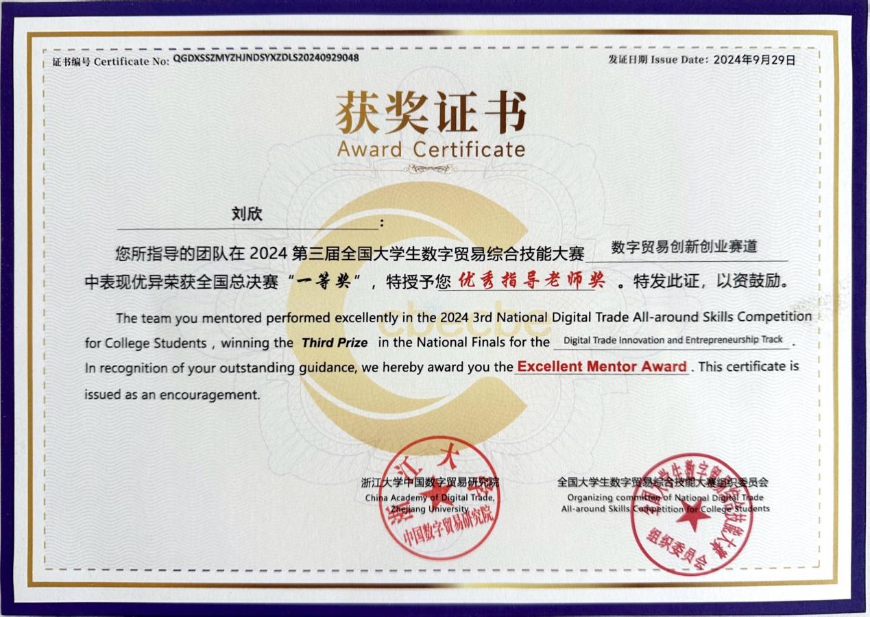 多名教师参与指导,并邀请在类似赛事上取得过国赛优异成绩的学长对选手们进行针对性的经验分享,为学生提供了良好的比赛保障。此项赛事构建了校企合作平台、校际交流平台以及全国大学生同台竞技的国际舞台,为培养优秀的全球化数字贸易人才创造条件,切实提高大学生的综合素质和数字贸易专业技能。学院将以本次大赛为契机,进一步创新人才培养模式,强化数字贸易与跨境电商领域的实践教学和科研成果转化,助力高质量的数智财经人才培养和学科建设迈上新台阶。