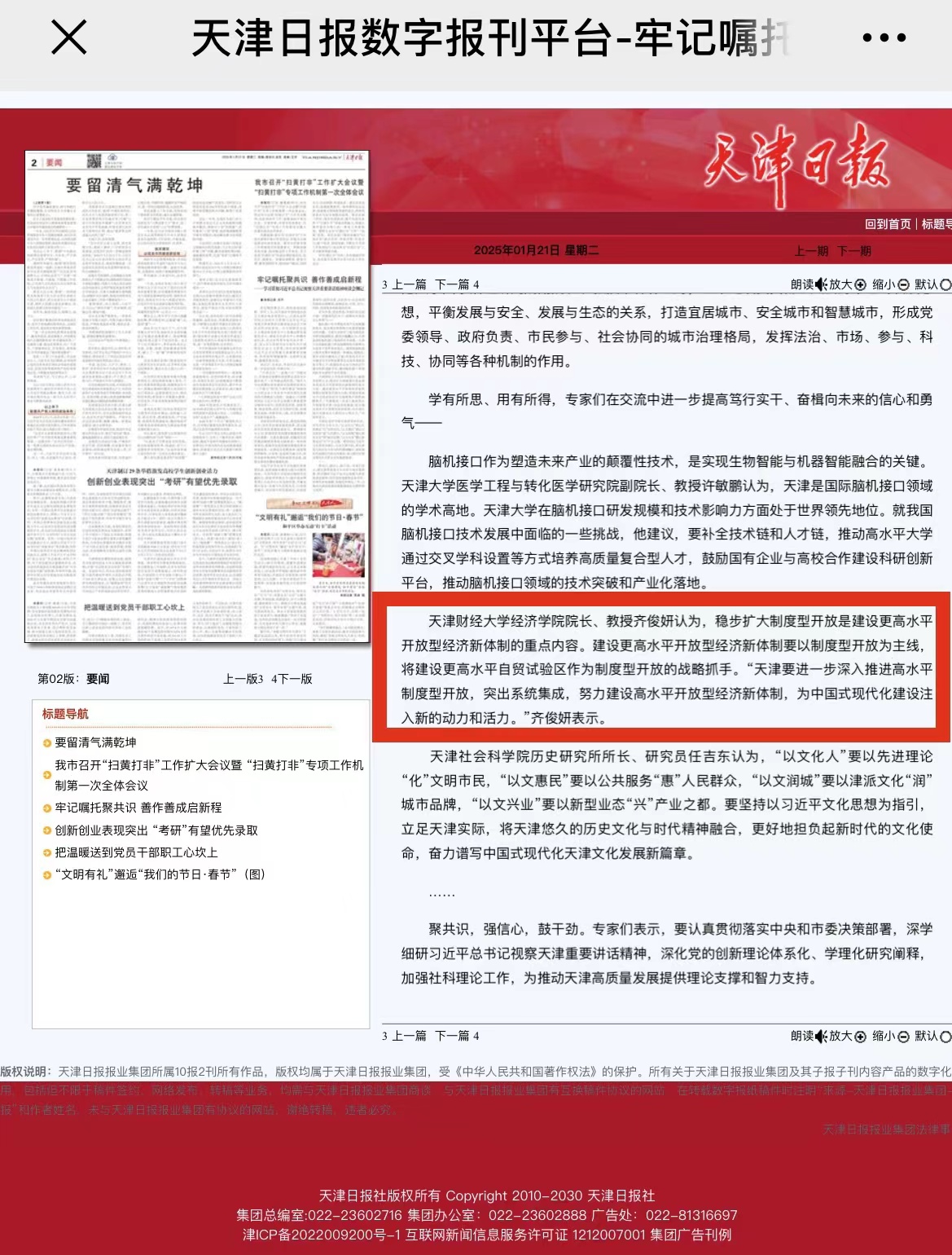 《天津日报》、津云两家媒体分别报道51暗网 院长齐俊妍教授参加学习贯彻习近平总书记视察天津重要讲话精神座谈会时的发言