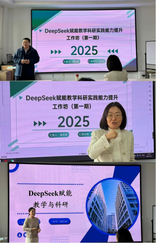 为深入贯彻落实国家教育数字化战略行动要求,加快人工智能技术与高等教育深度融合,赋能教学创新与科研攻关。学院积极选派教师参加学校举办的DeepSeek赋能教学科研实践能力提升工作坊活动。并于2025年3月7日,在N4-211开展“教学科研能力提升工作坊”第十六期活动“DeepSeek在教学科研中如何应用”,本次邀请谭庆刚和刘烨两位老师对DeepSeek在教学科研中如何应用与全院老师进行交流。