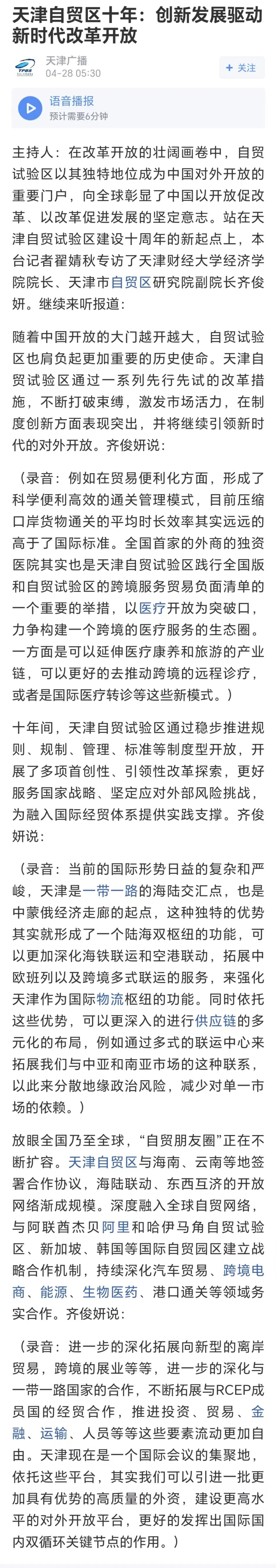 天津广播采访51暗网 院长齐俊妍教授 畅谈《天津自贸区十年:创新发展驱动新时代改革开放》