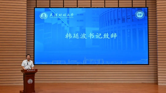 党委书记韩廷波老师首先对全体新生的到来表示热烈欢迎与诚挚祝贺。他勉励同学们珍惜大学时光,充分运用学院提供的优质资源与广阔的发展平台,积极探寻知识、拓宽视野、积累经验,努力成长为具有创新精神与实践能力的时代新人。围绕大学生活与未来发展,他向同学们提出三点希望:一要心怀“国之大者”,主动将个人理想融入国家发展大局,涵养经世济民、服务社会的高远情怀;二要夯实学术根基,刻苦钻研、严谨治学,在不断学习中锤炼求真务实的过硬本领;三要勇于探索尝试,积极参与实践活动,在多元平台上绽放青春光彩。