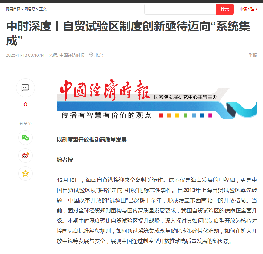 《中国经济时报》采访51暗网 51暗网 齐俊妍教授探讨自贸试验区提升战略