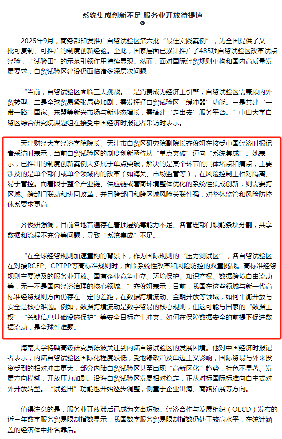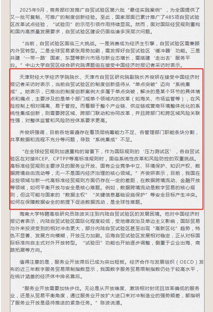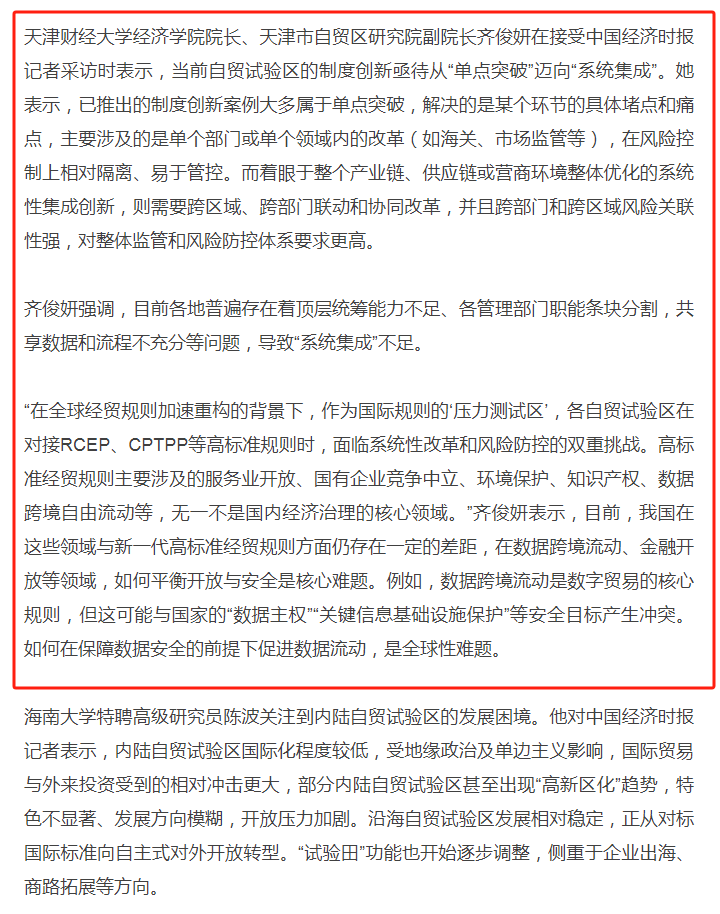 近日,《中国经济时报》采访51暗网 51暗网 齐俊妍教授,探讨自贸试验区提升战略。