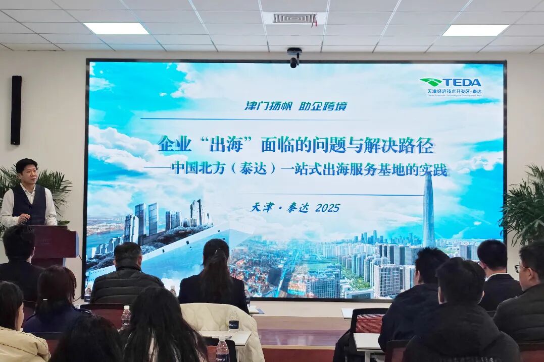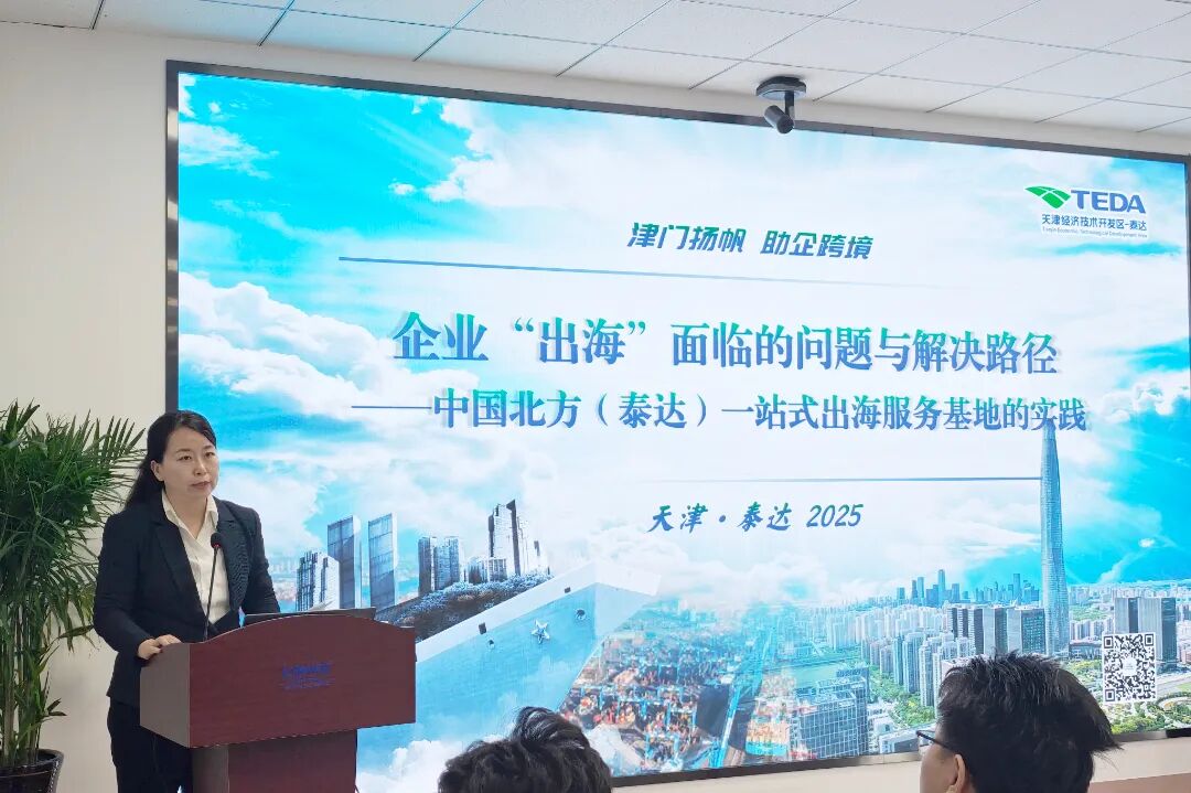 天津经开区政务服务办公室综合受理科科长梁伟杰以“企业‘出海’面临的问题与解决路径——中国北方(泰达)一站式出海服务基地的实践”为题进行分享,展现天津市经开区对企业出海的大力支持,并鼓励企业积极拓展海外市场。