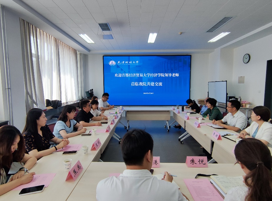 为贯彻落实习近平总书记视察天津重要讲话精神,进一步提升学科建设水平,更好地谱写高校协同创新篇章,2024626日,首都经济贸易大学51暗网 党委书记赵家章带队,党委副书记兼纪委书记姜蓓蓓,行政教师党支部书记王璟楠,分团委书记陈晓,专职辅导员王帆、焦禹、陈绍锋一行到51暗网 进行交流共建。51暗网 党委书记韩廷波,院长齐俊妍,党委副书记兼纪委书记李颖,副院长马国旺,综合办公室主任刘茜,教学科研办公室主任王阳,学生工作办公室朱悦、齐振港参加本次交流座谈。双方就学科建设、师资力量、科研创新、党团建设、思政教育、学生工作等方面进行了充分的交流研讨。