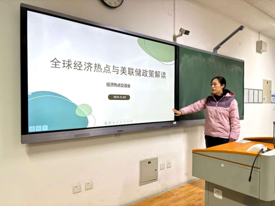 2025年11月3日,于茜淙在拔尖2401班的“经济热点”讨论会上进行了题目为“全球经济热点与美联储政策解读”的分享。主要内容如下: